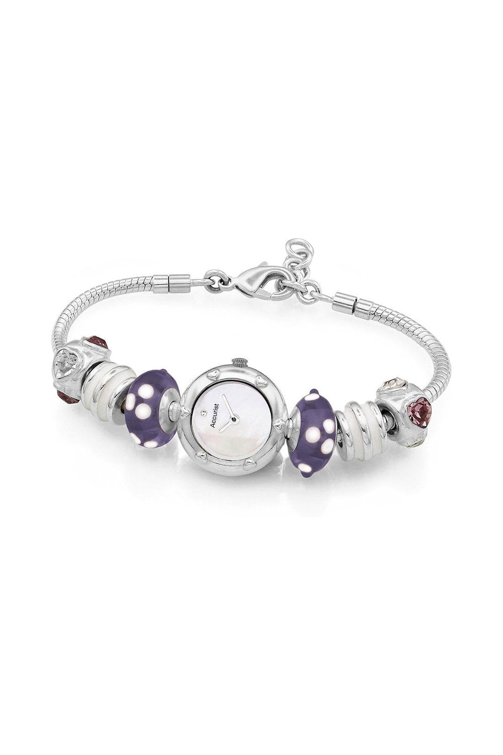 Accurist introduce another great analogue ladies timepiece that is engineered and designed by Accurist. This watch incorporates a stainless steel strap and a silver plated case which compliments the mother of pearl face.