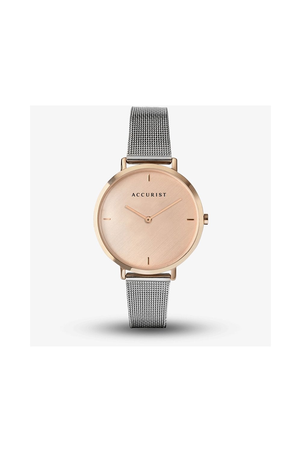 Accurist brings to you this terrific analogue ladies wrist watch that is designed and built by Accurist. This model has a silver stainless steel strap and a PVD plated stainless steel case which complements the pink dial.