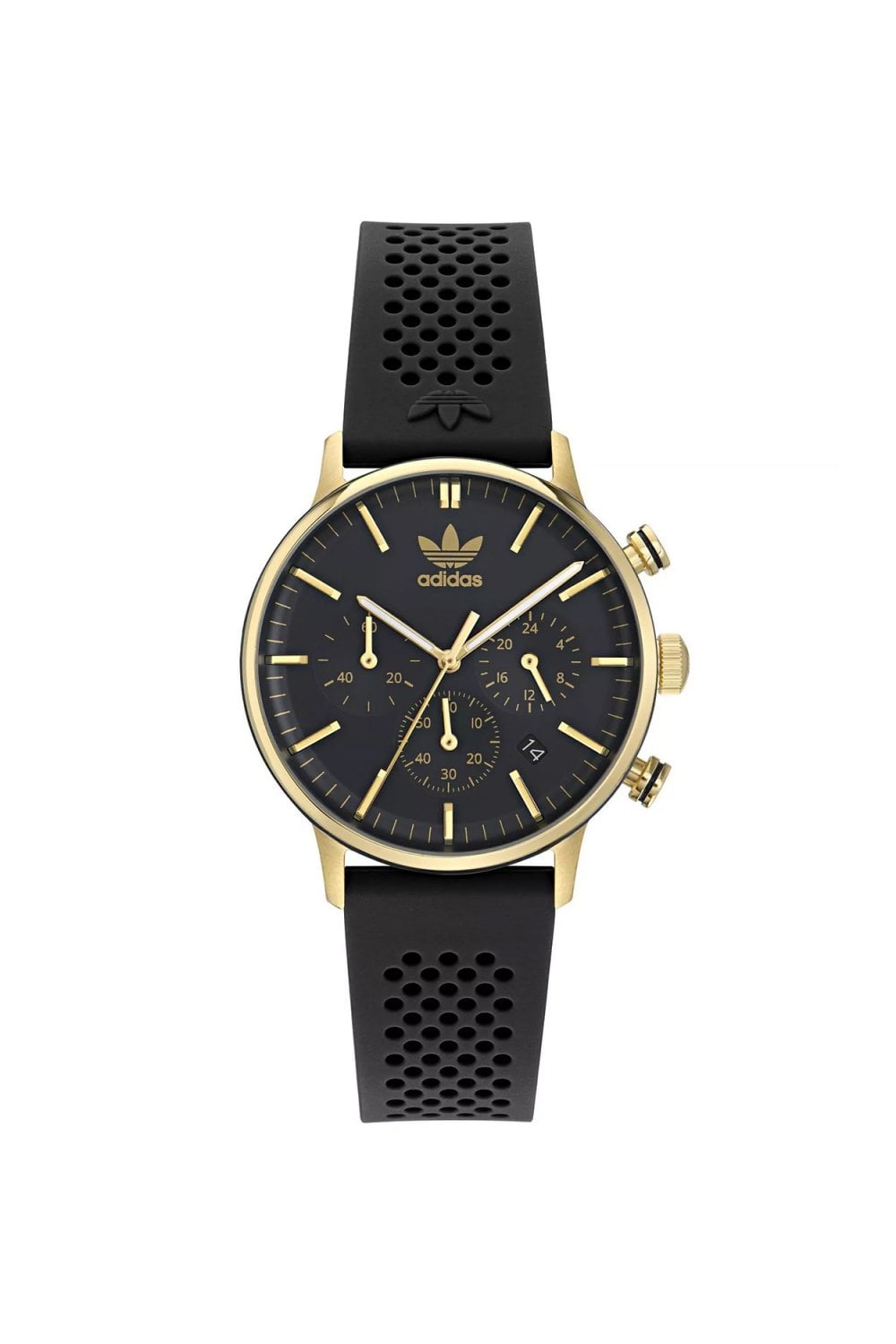 The Adidas Originals Code One Chrono AOSY23521 blends sporty functionality with clean streetwear styling. Its black dial is accented with gold‑tone details for a modern, premium look, while the black silicone strap keeps the watch lightweight and comfortable for everyday wear. The 40mm stainless‑steel case gives it a confident unisex profile, and the chronograph layout adds practical timing functionality. With 50m water resistance and a reliable quartz movement, it’s built for daily use while staying true to the Adidas Originals design language.