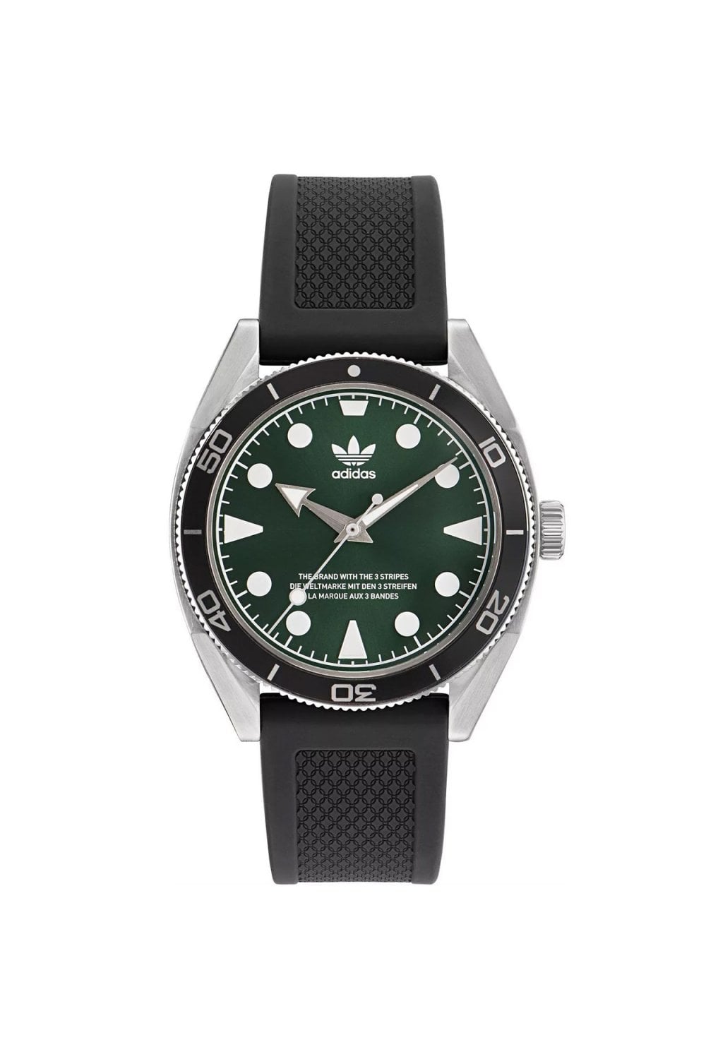 The Adidas Edition Two AOFH230082I blends minimalist streetwear styling with everyday practicality. Its green sunray dial adds a bold pop of colour, contrasted by a sleek black case and strap for a modern, athletic look. Powered by a reliable Japanese quartz movement and built with a waterproof case, it’s designed for daily wear — from casual outfits to active days. Clean, lightweight, and unmistakably Adidas Originals.
