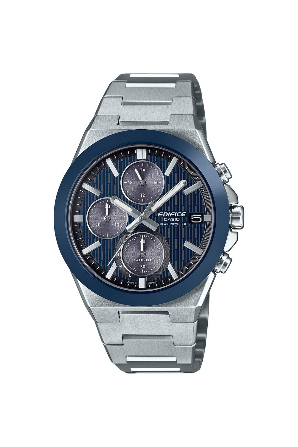 • 39.5 mm case and refined blue dial deliver a modern aesthetic with stopwatch functionality and 100 metre water resistance