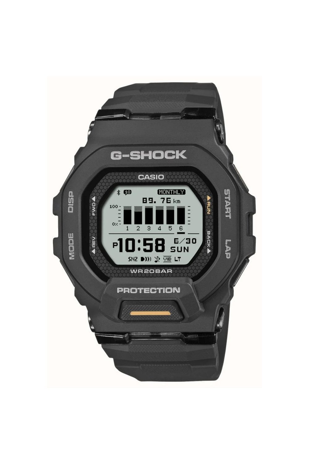 Designed for performance and built to last, this new addition to the G-SQUAD line combines the toughness you expect from G-SHOCK with practical features to support your workouts — including distance tracking, smartphone connectivity and a clear, easy-to-read display.