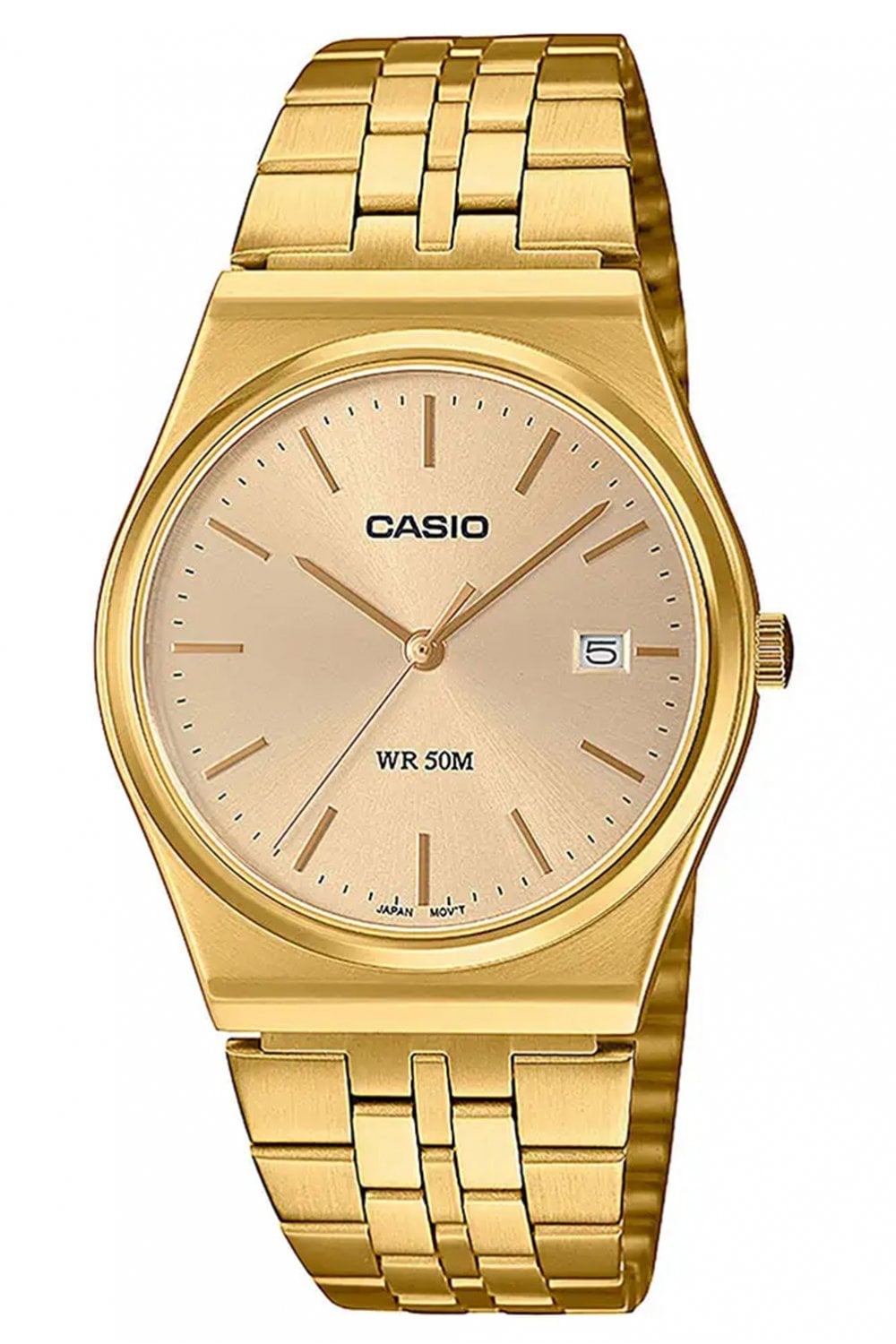 Discover the latest addition to the Casio MTP range, a timeless analogue timepiece with neobrite hands, a sleek PVD plated stainless steel case and band. It features a minimalist gold dial design for a pure fashion statement, and the time is so easy to read. This timepiece is tested for water resistance up to 50M.