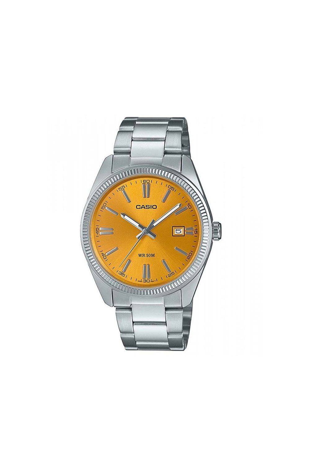 Classic CASIO analogue timepiece with a date display, orange coloured face and mineral glass. Neobrite hands make reading the time in the dark easy, and it's 50M water resistant too.