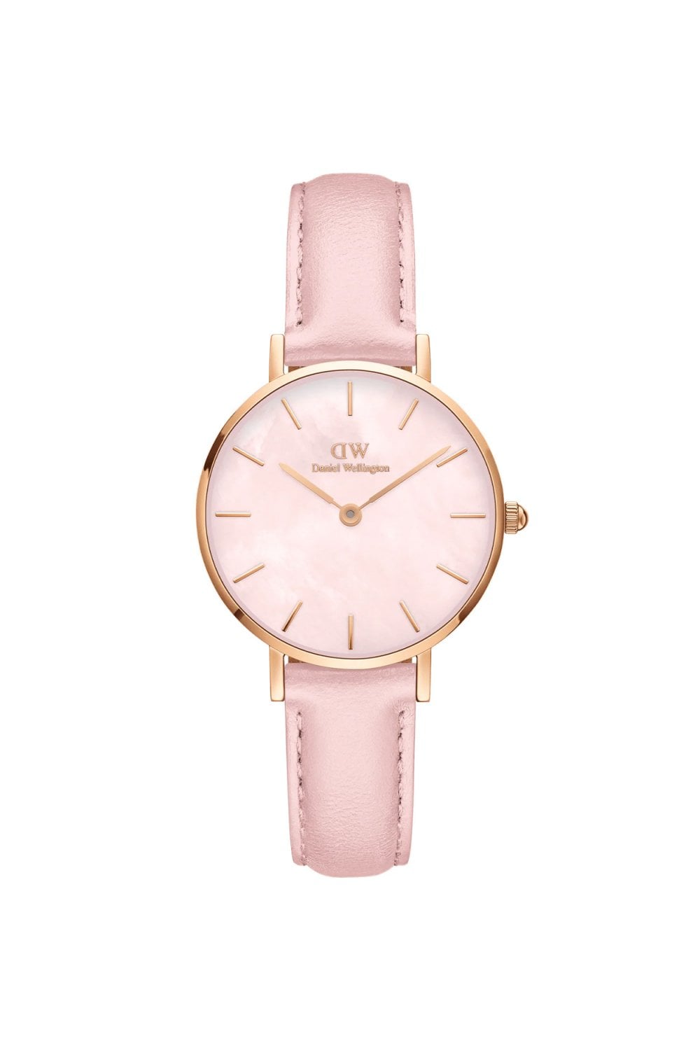 The watch is paired with a pink leather strap (12mm width), offering a feminine and refined finish. Powered by a reliable Japanese quartz movement, the DW00100633 delivers precision timekeeping in a slim, fashion‑forward profile. With 30m water resistance, it is splash‑proof for everyday wear.