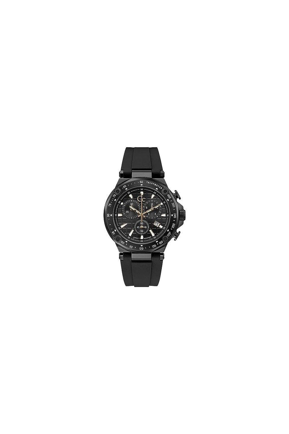 Gc Gents watches are all about looking great. Each Gc watch reflects modern trends in true Gc style, with bold and irresistibly sleek designs available across the collection. Add a new lease of life to your look with this gents dress style watch from Gc. Featuring a stunning analogue black face in a 44mm diameter 12mm thick case. Also boasting the well-known Gc features, including Chronograph, Date window, Swiss Movement, Screw down Crown, Mineral Glass and Water-Resistant. With a standard length silicone strap. This watch is water resistant up to 100 metres. It also comes in its own Gc Gift Box making it the perfect present. All this with a 2-year Manufacturers Guarantee for added reassurance.