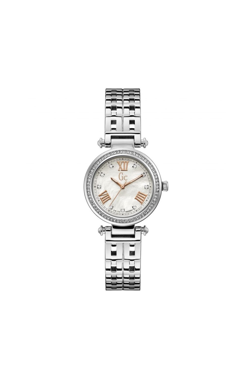 Gc Ladies watches are all about looking great. Each Gc watch reflects modern trends in true Gc style, with bold and irresistibly sleek designs available across the collection. Add a new lease of life to your look with this ladies dress style watch from Gc. Featuring a stunning analogue mother of pearl face in a 32mm diameter 9mm thick case. Also boasting the well-known Gc features, including Swiss Movement, Push/Pull Crown, Sapphire Glass and Water-Resistant. With a fully adjustable stainless steel bracelet. This watch is water resistant up to 100 metres. It also comes in its own Gc Gift Box making it the perfect present. All this with a 2-year Manufacturers Guarantee for added reassurance.