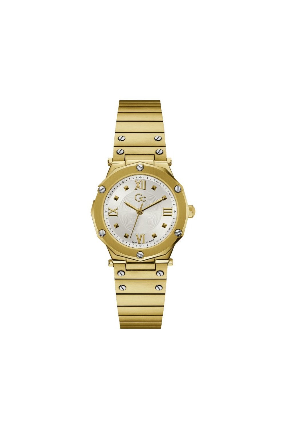 Gc Ladies watches are all about looking great. Each Gc watch reflects modern trends in true Gc style, with bold and irresistibly sleek designs available across the collection. Add a new lease of life to your look with this ladies dress style watch from Gc. Featuring a stunning analogue silver face in a 36mm diameter 9mm thick case. Also boasting the well-known Gc features, including Swiss Movement, Push/Pull Crown, Sapphire Glass and Water-Resistant. With a fully adjustable PVD plated bracelet. This watch is water resistant up to 50 metres. It also comes in its own Gc Gift Box making it the perfect present. All this with a 2-year Manufacturers Guarantee for added reassurance.