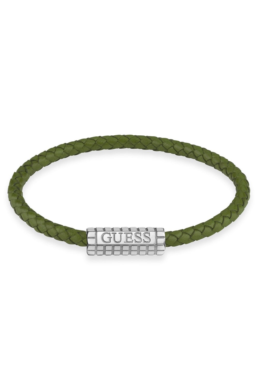 From the Mare Magnum collection, this Guess men's bracelet pairs rich green coloured braided leather with a textured silver-tone clasp. The engraved GUESS logo adds signature style, while the magnetic closure ensures secure, effortless wear. A rugged yet refined piece for everyday layering.