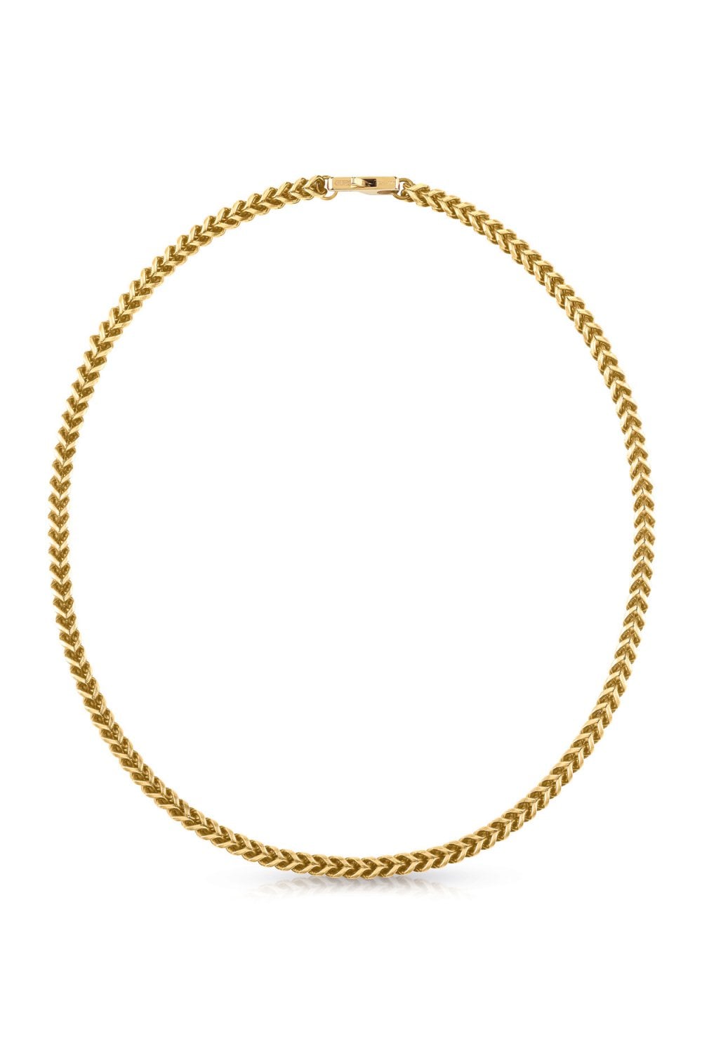 Add a refined edge to your look with this Guess My Chains foxtail necklace. Crafted in polished gold-tone stainless steel, it features a sleek foxtail weave that delivers texture and strength. Finished with a secure lobster clasp, it’s a bold essential for everyday wear or layered styling.