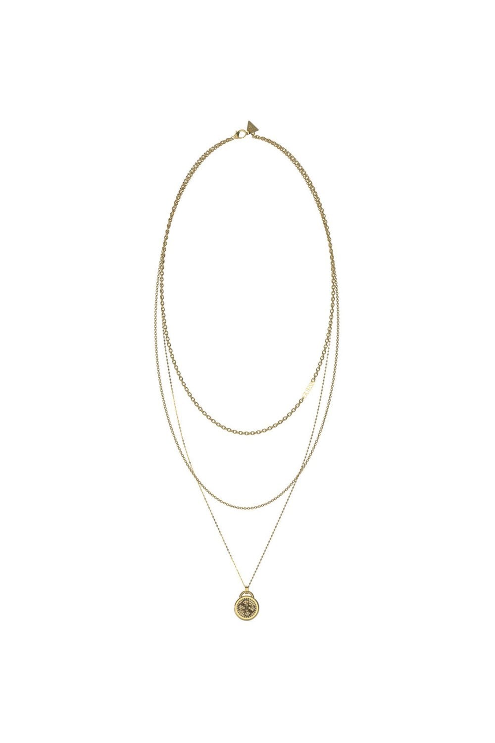 Elevate your neckline with the Guess Endless Dream necklace, a polished yellow gold-tone piece featuring a crystal-studded pendant that radiates timeless elegance. The fine adjustable chain ensures a perfect fit, while the signature Guess logo tag adds a touch of branded charm—ideal for layering or wearing solo.