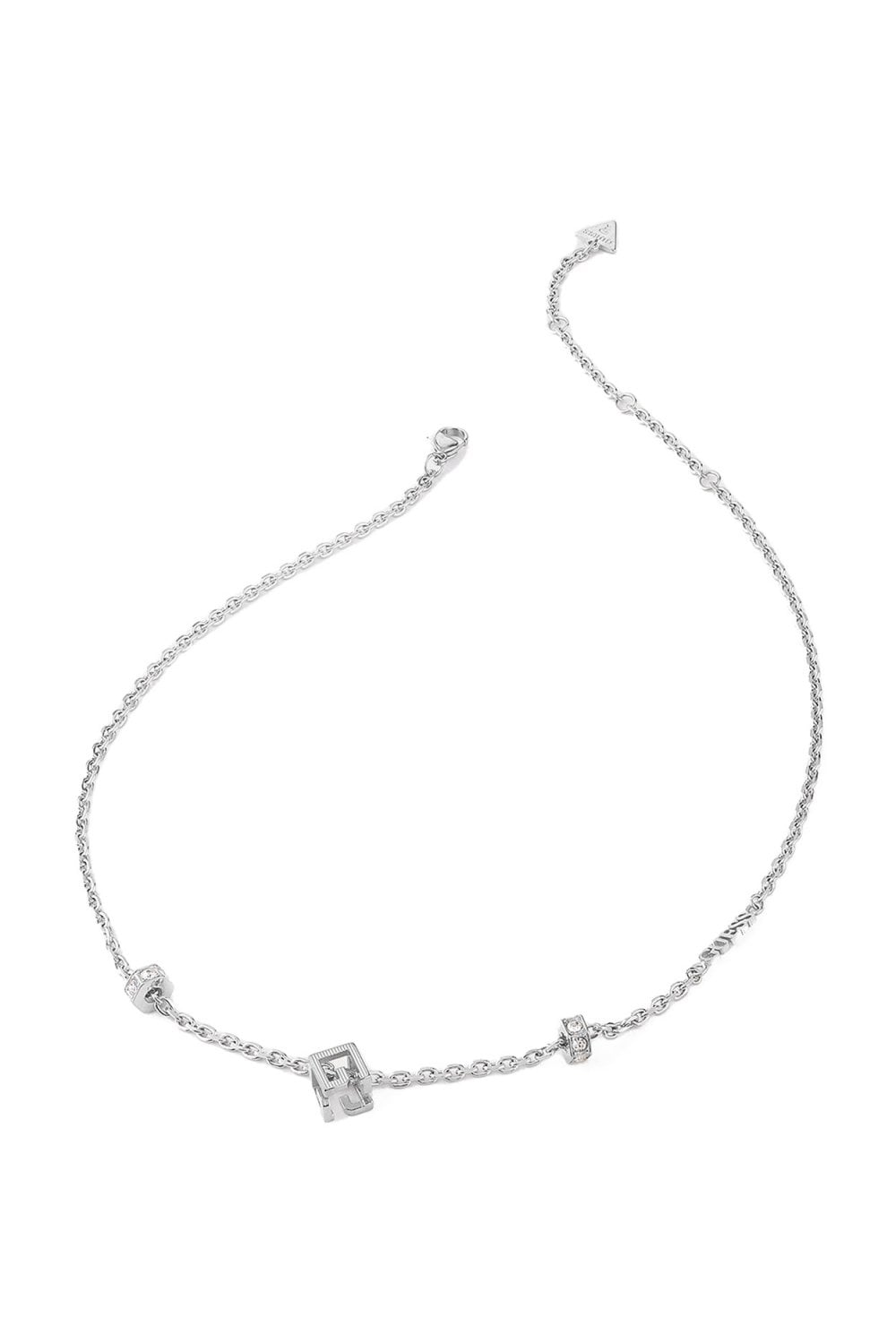Elevate your everyday look with the Guess G Cube necklace, featuring a polished silver-tone finish and a trio of geometric charms. With crystal accents and signature Guess detailing, this piece blends modern minimalism with subtle sparkle.