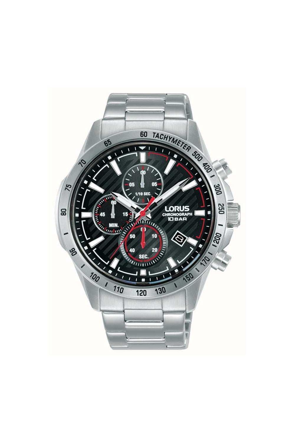Add a new lease of life to your look with this Gents sports chronograph watch from Lorus. Featuring a superb analogue black face in a 43mm diameter 11mm thick case. Also boasting the well know Lorus features, including Stopwatch, Date Indicator, Tachymeter, Crown Protector,  Mineral Crystal, Push/Pull Crown and Water-Resistant. This watch comes with a fully adjustable stainless steel bracelet and is water resistant up to 100 metres. It also come in it's own Gift Box making it the perfect present. All this with a 2 year manufacturers (International) warranty for extra peace of mind. Lorus offer a beautiful collection of watches for men with many features and the longevity you look for from Lorus.