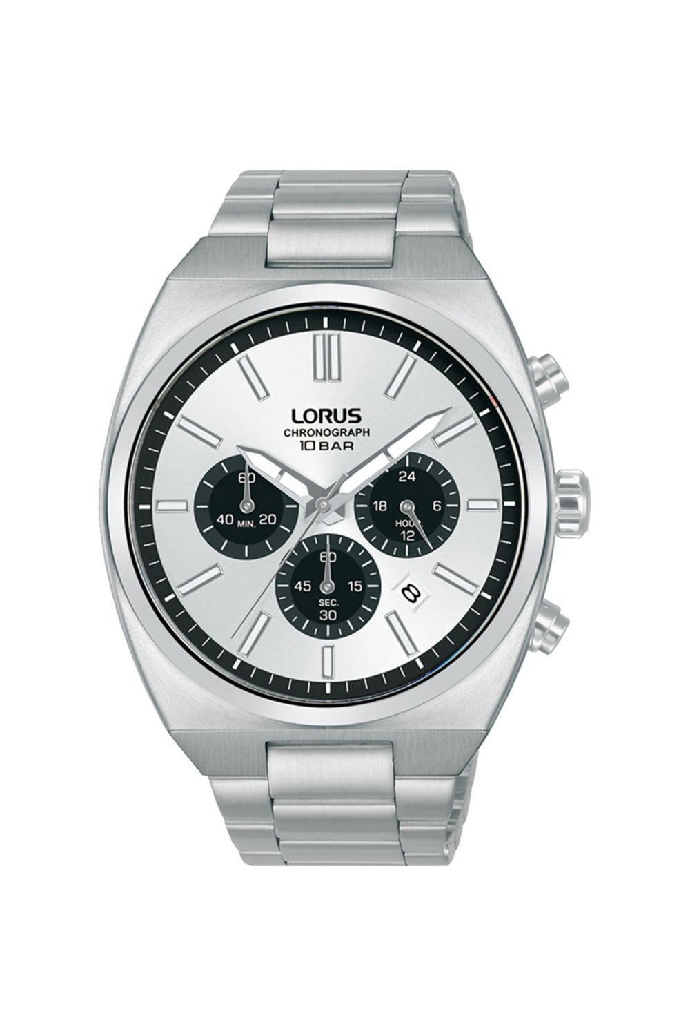 This elegant Lorus Watch presents a monochromatic, high-end look that is both modern and timeless. Featuring a stunning silver sunray dial set against a polished 43mm stainless steel case, it uses depth and texture to create a sophisticated "all-silver" aesthetic. The precision-engineered Seiko movement drives a functional three-subdial chronograph layout, including a 24-hour indicator and a date window. With its robust 100m water resistance and high-visibility LumiBrite hands, this timepiece is a versatile powerhouse, perfectly suited for the boardroom or a weekend at the coast.
