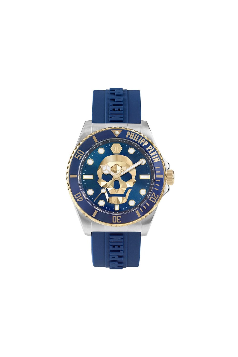 The Philipp Plein Gents The $Kull Watch PWOAA0222 is the purest example of what Philipp Plein wants to exude. The beautiful design of this watch is tastefully accentuated by the use of a blue bezel and on the dial. This men's watch is suitable for the truly fashion-conscious man.