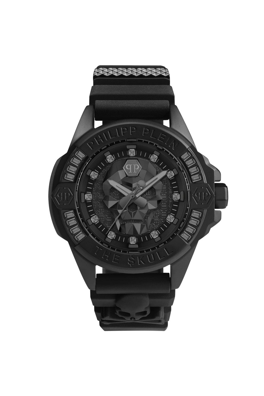 Transcend traditional boundaries with The $kull High Conic Unisex watch, a masterpiece of edgy luxury. This 41mm timepiece features a slimmer, more versatile case that perfectly balances comfort with a commanding presence on the wrist. The heart of the watch is a black dial dominated by a faceted 3D skull design—a dramatic execution of Philipp Plein's signature element. Set against a black IP stainless steel case and a high-quality silicone strap, this unconventional accessory is for those who demand a look that is both playful and sophisticated.