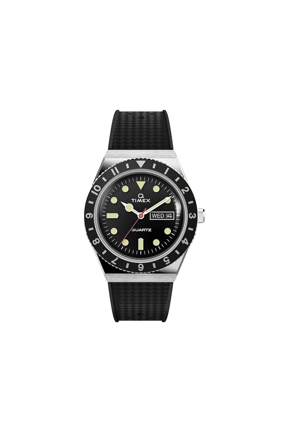 First released in the 1970s, our original Q Timex gave a new generation a modern watch with quartz technology. This natural evolution of our much-loved Q Timex 1978 Reissue includes the iconic features of the original—a rotating bezel and domed acrylic crystal—now with a bold, fresh, and durable black synthetic rubber strap that perfectly coordinates with the dial. It’s everything you already loved, and then some.