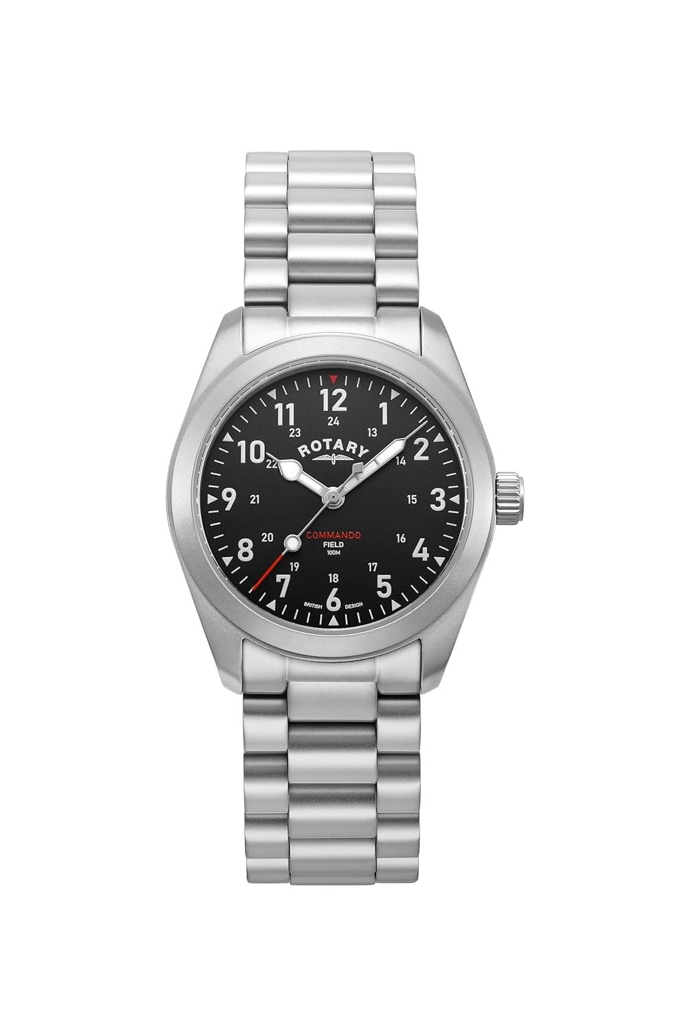 The GB05535/19 commando watch from Rotary. The GB05535/19 features a stunning analogue black face in a 40mm diameter 9mm thick case. The Rotary GB05535/19 features include push/pull crown, sapphire glass and water-resistant. The GB05535/19 has a fully adjustable stainless steel bracelet. This watch is water resistant up to 100 metres. The GB05535/19 also comes in its own Rotary gift box making it the perfect present. All this with a 2 year manufacturer's guarantee and instruction booklet.