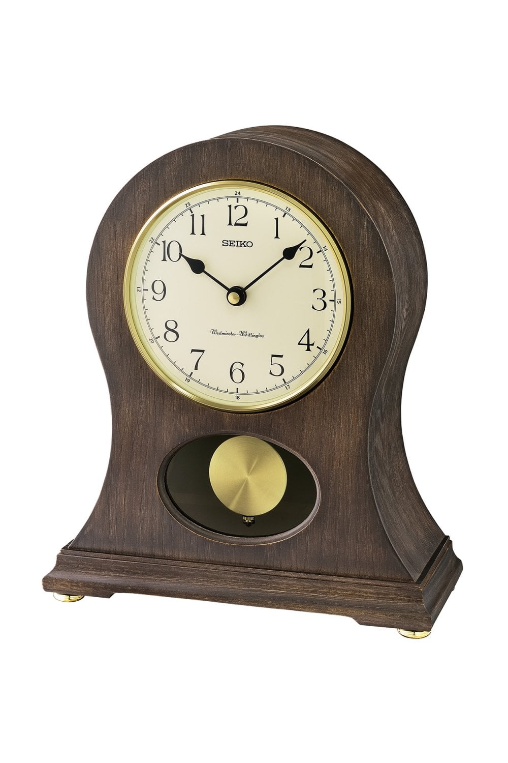 Prestige at Eye Level. A solid wood mantel clock with a traditional chime. The perfect heirloom piece for a study or library.