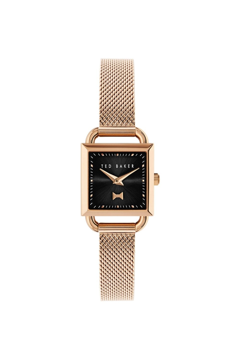 The Ted Baker BKPTAS106 is a stylish women's analog watch featuring a black dial, rose gold-toned stainless steel bracelet, and quartz movement.