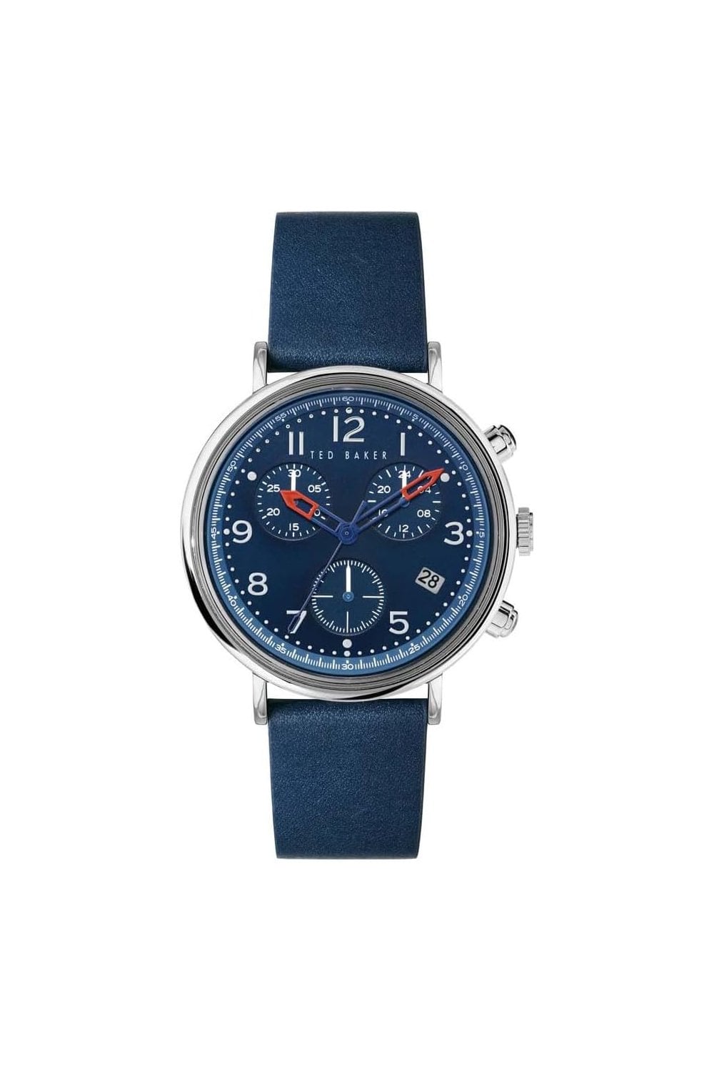 The BKPMMF127 casual watch from Ted Baker. The BKPMMF127 features a stunning analogue blue face in a 41mm diameter 10mm thick case. The Ted Baker BKPMMF127 features include chronograph, date window, push/pull crown and water-resistant. The BKPMMF127 has a standard length blue leather strap. This watch is water resistant up to 50 metres. The BKPMMF127 also comes in its own Ted Baker gift box making it the perfect present. All this with a 2 year manufacturer's guarantee and instruction booklet.Ted Baker offers a great range of watches for gents. All with the most up-to-date designs and long lasting durability, whether they are in the fashion, sport or technical ranges.