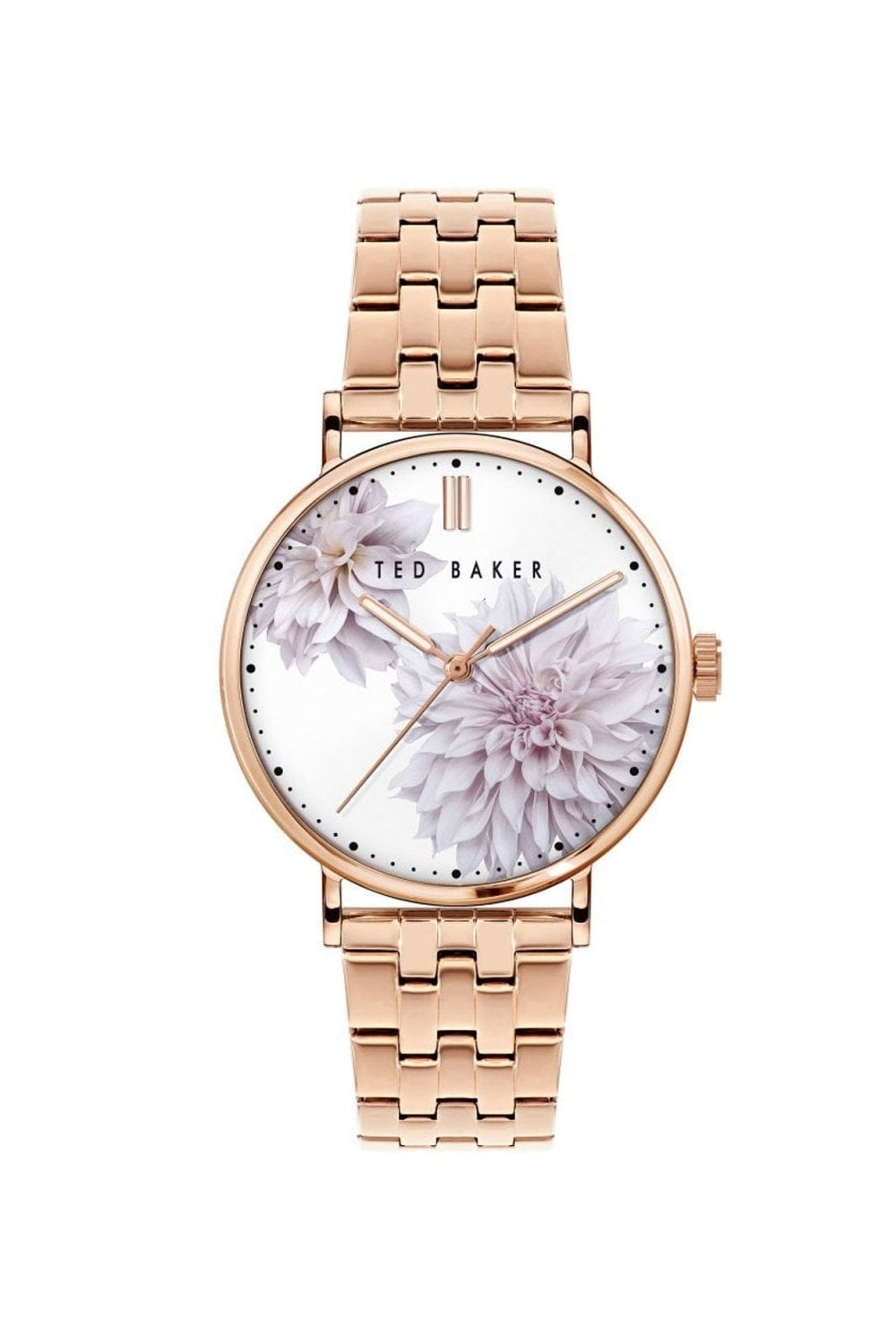 The BKPPHS120 watch, also known as the Ted Baker Phylipa Peonia, is a stunning piece designed for women. It features a rose gold-tone stainless steel bracelet, a white and pink printed dial, and a 37mm case diameter. The watch operates on quartz analog movement and is water-resistant up to 50 metres.
