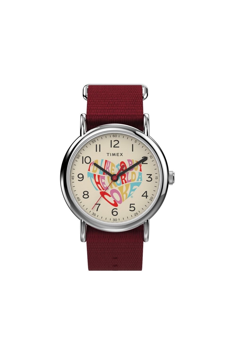 Add a stylish edge to your wrist with this Coca Cola collection quartz battery watch from Timex. Featuring a stunning analogue Cream face in a 40mm diameter 8mm thick case. Also boasting the well known Timex features, including Mineral Crystal, Push/Pull Crown and Water-Resistant. With a fabric standard length strap. This watch is water resistant up to 30 metres. It also come in it's own Gift Box making it the perfect present. All this with a 2 Year Manufacturers (International) warranty for added reassurance. Timex offer a beautiful collection of watches for men with many features and the build you come to expect from Timex.