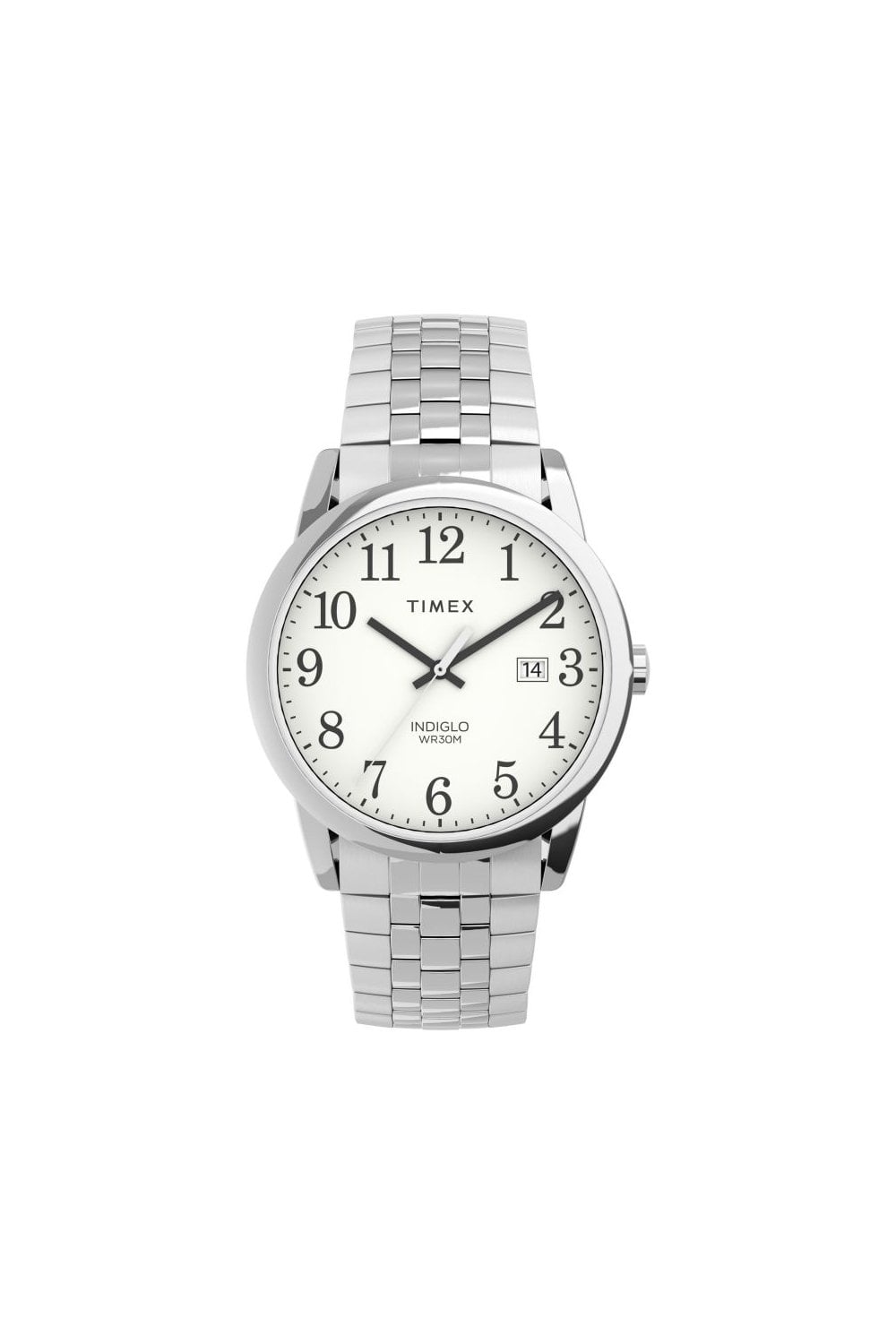 The Timex TW2V40000 is a stylish and functional watch known for its Easy Reader design. It features a 38mm silver-tone case, a white dial with Arabic numerals, and a stainless steel expansion band. The watch is equipped with INDIGLO backlight technology, making it easy to read in the dark, and is water-resistant up to 30 metres.