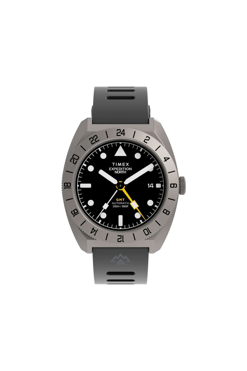 Our Expedition North GMT Titanium Automatic is built for adventurers who demand durability, functionality, and style in their timepiece. Crafted with a shock-resistant 41mm case rendered in titanium, it’s incredibly tough yet lightweight and comfortable on the wrist. Powering it is a Japanese automatic GMT movement for dual time zone tracking, complete with a bi-directional, rotating bezel and vibrant yellow GMT hand for easy reference. We’ve equipped it with a scratch-resistant sapphire crystal enhanced with anti-reflective coating for optimal clarity, an exhibition caseback that allows for a view of the movement, luminant hands and markers, and 200m of water resistance. Topping it off is a flexible silicone strap complete with quick-release spring bars, allowing for easy customization to suit your journey.