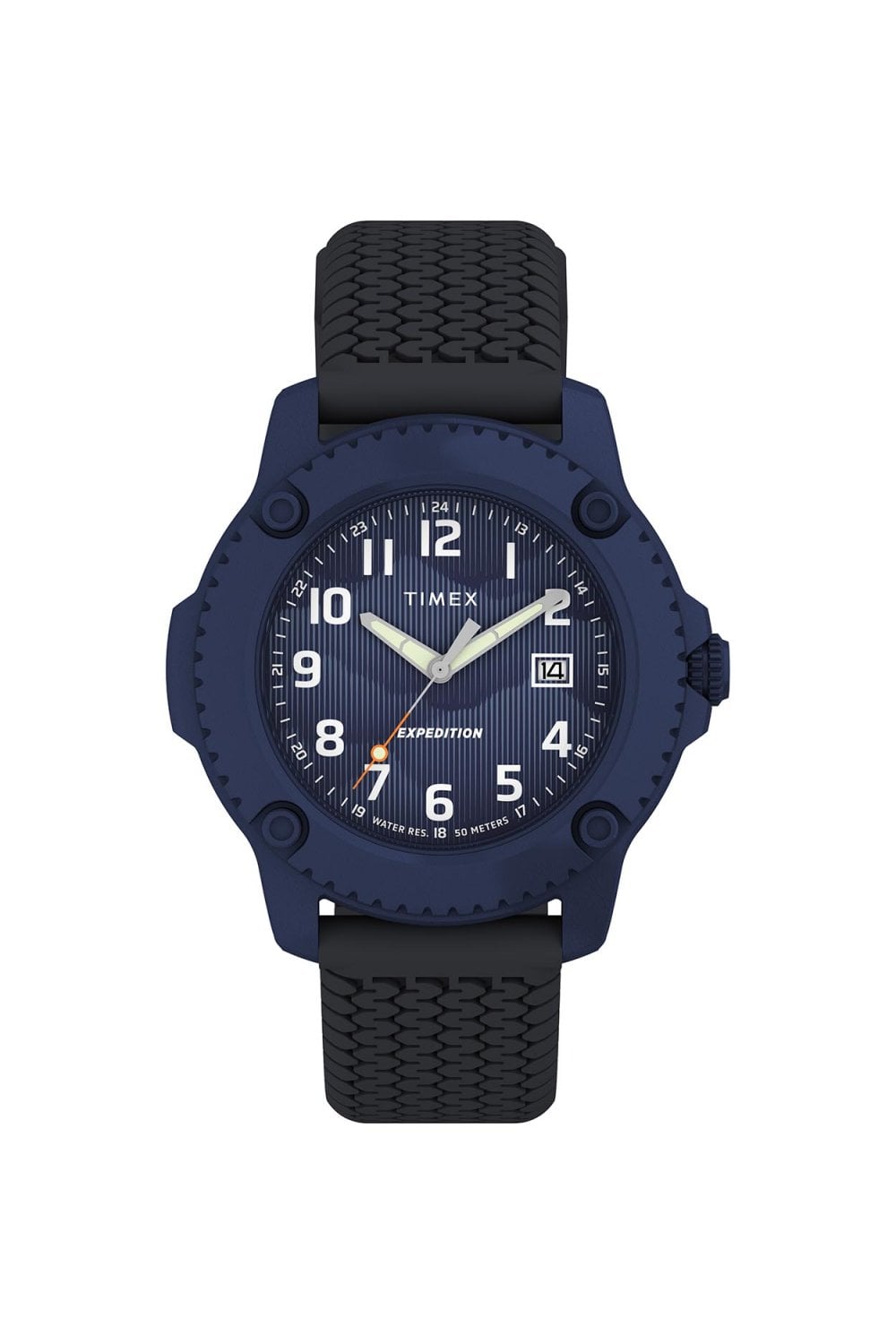 With its bold camo print dial and durable yet lightweight build, our Expedition Timber is strength, style, and utility, all in one fearless companion. Made from soft silicone that feels as good as it looks, the blue, green, or black strap features a unique tread-marked texture that pairs handsomely with the rugged blue, green or black 42mm aluminum case. A sturdy crown protector, durable mineral glass crystal, and handy date window keep you on track while you’re off-grid, while luminant hands make sure you're never left in the dark.