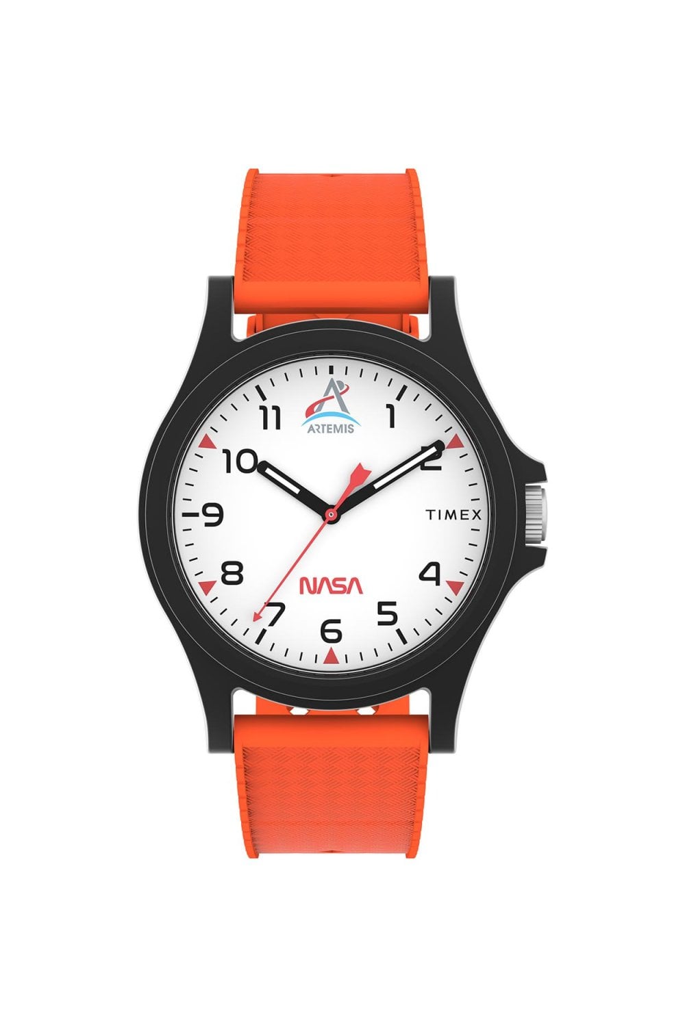 White dial with red NASA logotype and Artemis symbol