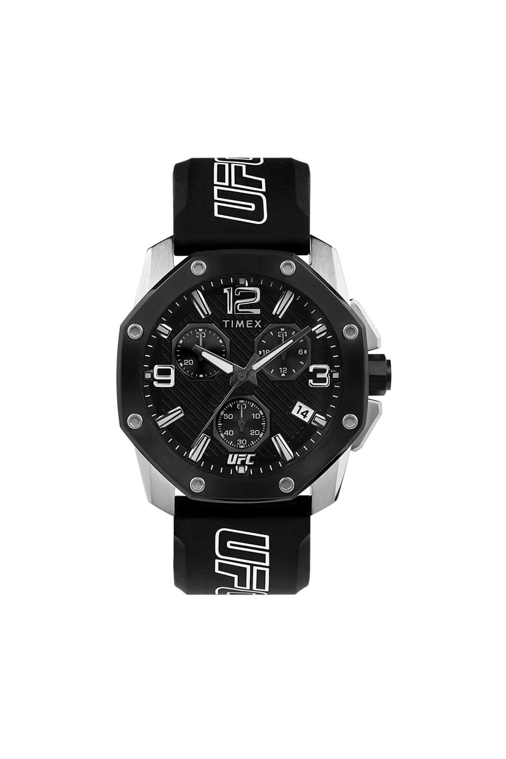 The TW2V58600 UFC icon watch from Timex. The TW2V58600 features a stunning analogue black face in a 45mm diameter case. The Timex TW2V58600 features include push/pull crown, day display, chronograph and water-resistant. The TW2V58600 has a silicone standard length strap. This watch is water resistant up to 100 metres. The TW2V58600 also comes in its own Timex gift box making it the perfect present. All this with a 2 year manufacturer's guarantee and instruction booklet. Timex offers a great range of watches for men. All with the most up-to-date designs and long lasting durability, whether they are in the fashion, sport or technical ranges.