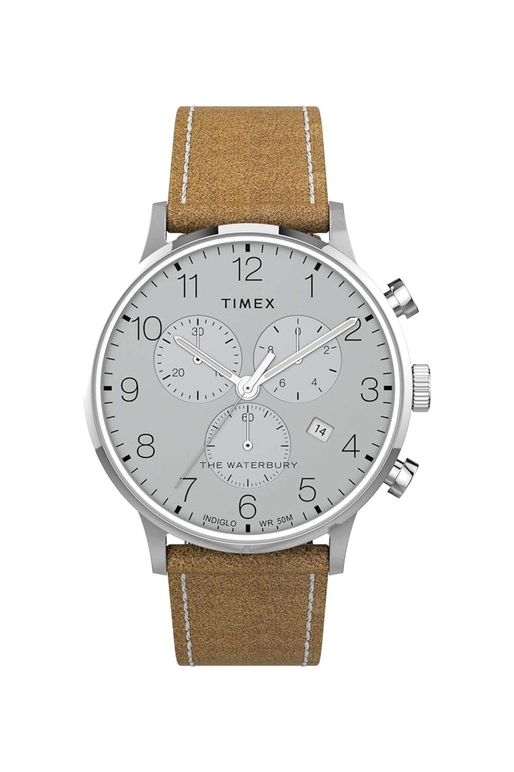 The TW2T71200 Waterbury Chronograph watch from Timex. The TW2T71200 features a stunning analogue silver face in a 40mm diameter 11mm thick case. The Timex TW2T71200 features include Indiglo Backlight, Date Window, Chronograph, Mineral Crystal Glass, Push/Pull Crown and Water-Resistant. The TW2T71200 has a leather standard length strap. This watch is water resistant up to 50 metres. The TW2T71200 also comes in its own Timex gift box making it the perfect present. All this with a 2-year manufacturer's guarantee and instruction booklet. Timex offers a great range of watches for men. All with the most up-to-date designs and long-lasting durability, whether they are in the fashion, sport or technical ranges.