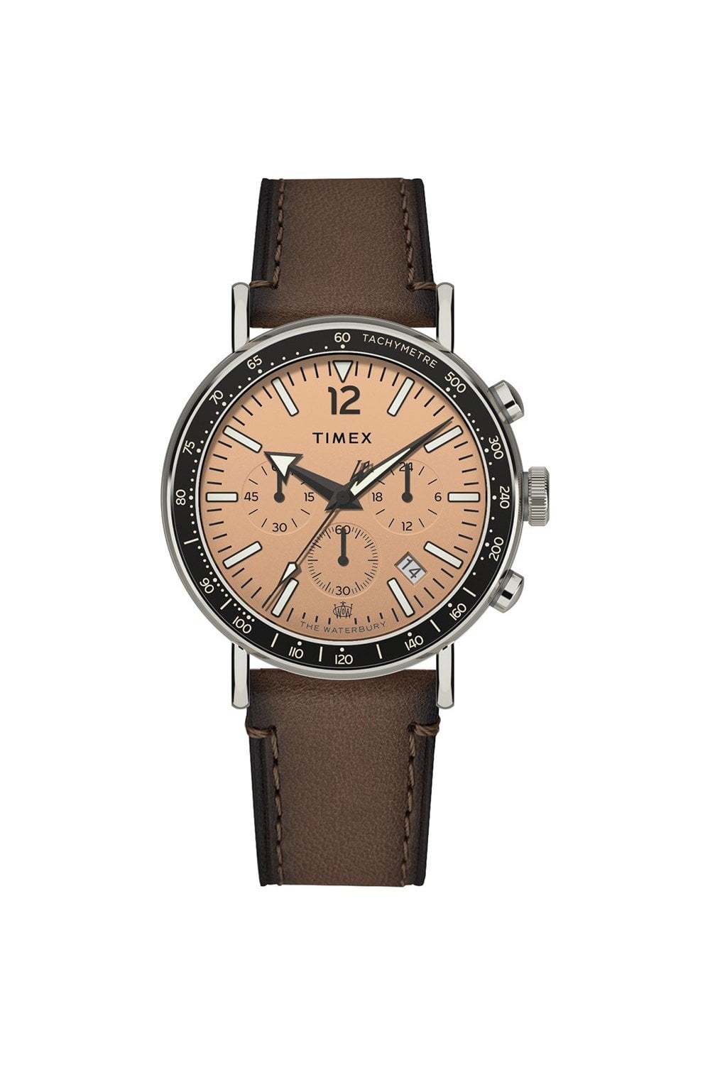 The Timex TW2W47300 Waterbury watch from Timex. The TW2W47300 features a stunning analogue rose gold face in a 42mm diameter 10mm thick case. The Timex TW2W47300 features include mineral glass, push/pull crown and water-resistant. The TW2W47300 has a standard length leather strap. This watch is water resistant up to 100 metres. The TW2W47300 also comes in its own Timex gift box making it the perfect present. All this with a 2-year manufacturer's guarantee and instruction booklet.Timex offers a great range of watches for men and women. All with the most up-to-date designs and long-lasting durability, whether they are in the fashion, sport or technical ranges.