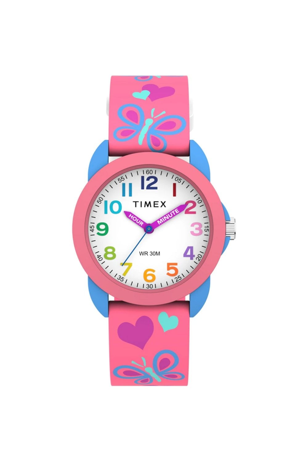 Thoughtfully designed and built durable enough for kids on the move, our Timex Kids Analog watch makes timekeeping fun. Easy-to-read numbers, a super-soft silicone strap with playful graphics, time-teaching hour and minute hands, and a durable 30mm resin case with a sturdy crown protector make it a perfect watch for little wrists.