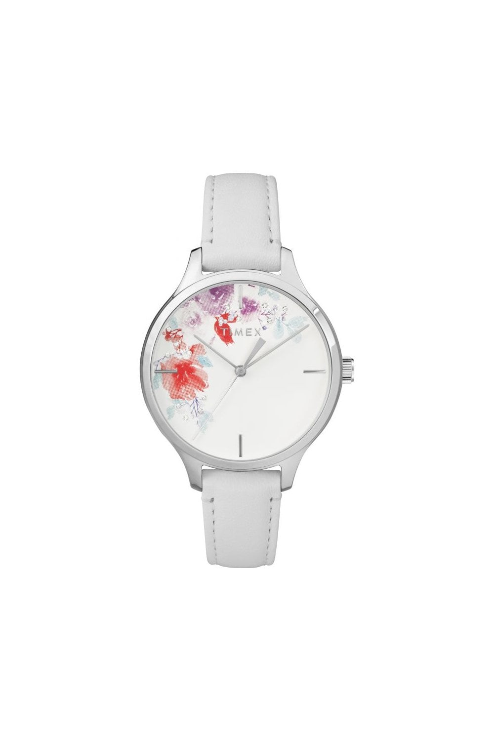 Add a stylish edge to your wrist with this ladies Casual style quartz battery watch from Timex. Featuring a stunning analogue white face in a 36mm diameter 8mm thick case. Also boasting the well known Timex features, including Mineral Crystal, Push/Pull Crown and Water-Resistant. With a leather standard length strap. This watch is water resistant up to 30 metres. It also come in it's own Gift Box making it the perfect present. All this with a 2 Years Manufacturers (International) warranty for added reassurance. Timex offer a beautiful collection of watches for men with many features and the build you come to expect from Timex.