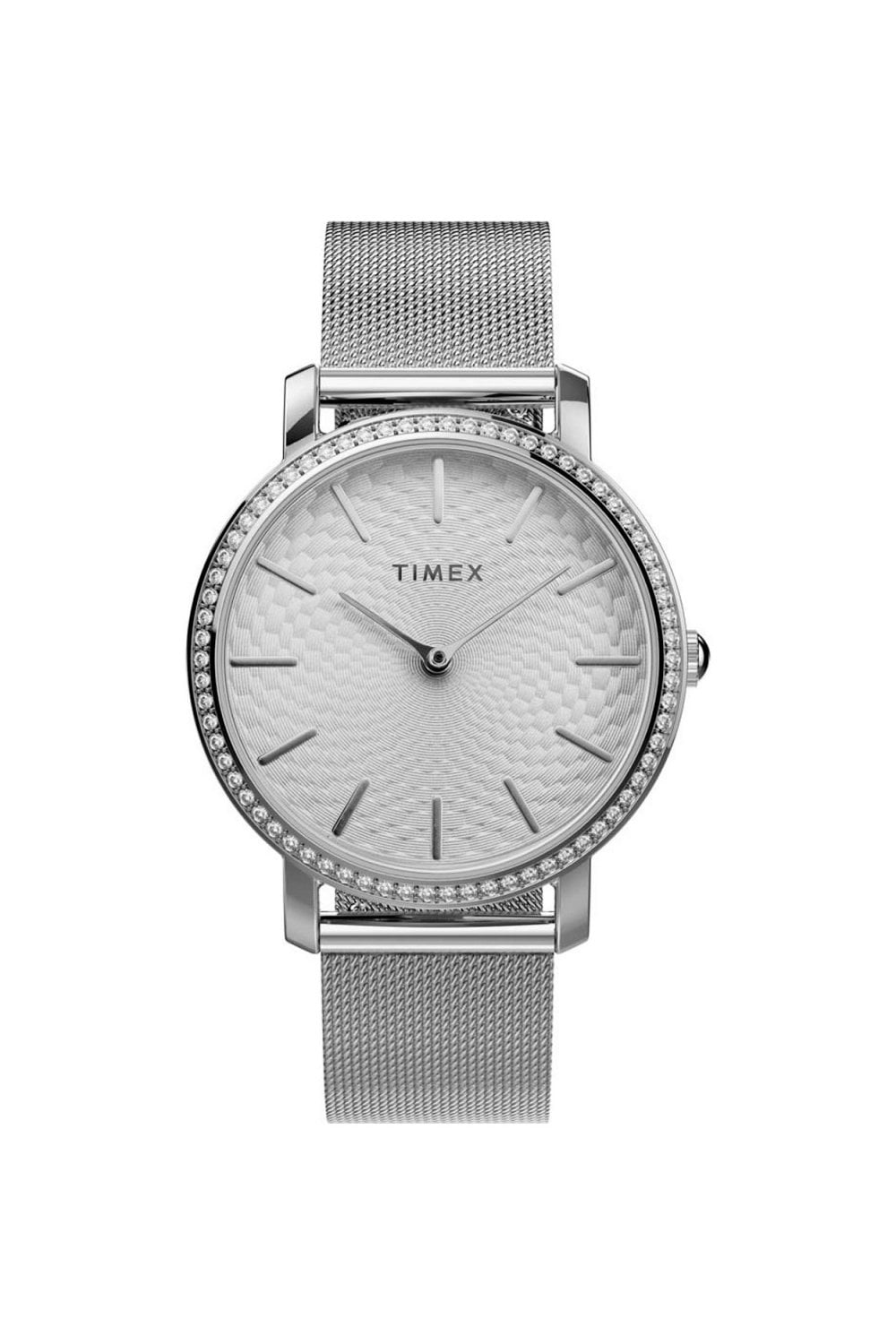 A refined blend of minimalism and sparkle, the Timex TW2V52400 presents a slim 34 mm silver‑tone case framed by a crystal‑set bezel that adds just the right touch of elegance. Its clean silver dial, paired with a polished stainless‑steel bracelet, creates a contemporary look that suits both everyday wear and more dressed‑up moments. Powered by a reliable quartz movement and protected by mineral glass, it offers dependable timekeeping in a lightweight, comfortable design. With 30 m water resistance and quick‑release spring bars for easy strap changes, it’s a versatile, modern dress watch crafted to feel effortlessly stylish. All this with a 2-year manufacturer's guarantee and instruction booklet. Timex offers a great range of watches for men and women. All with the most up-to-date designs and long-lasting durability, whether they are in the fashion, sport or technical ranges.
