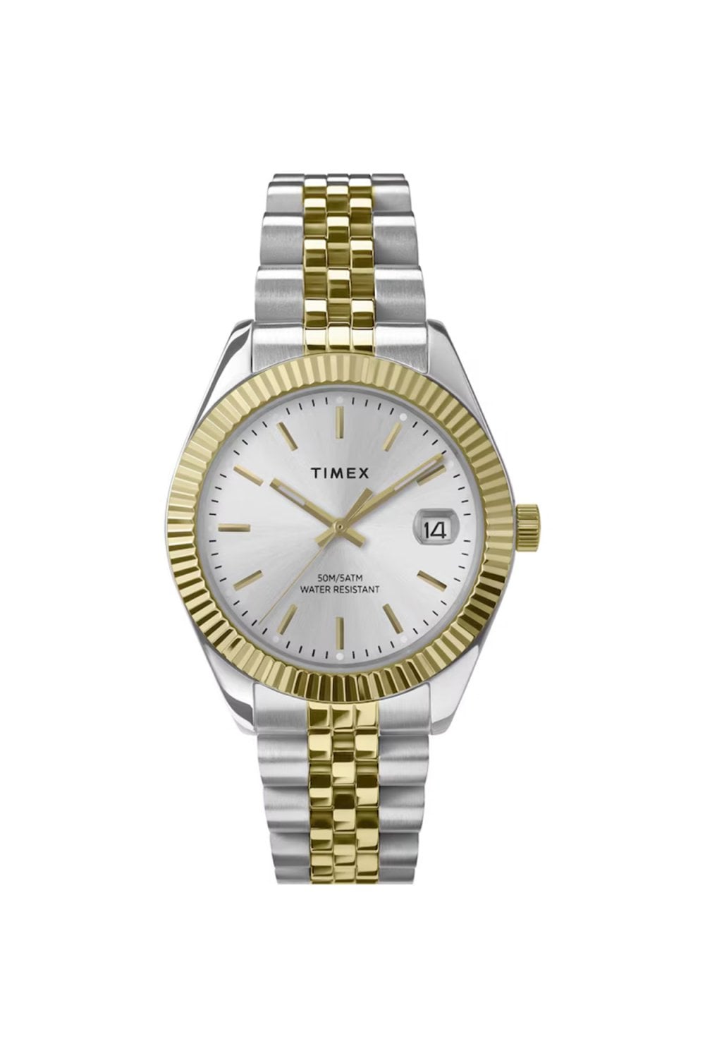 Heritage Meets High Fashion. The Timex Legacy TW2W49700 is a tribute to nearly 170 years of watchmaking excellence. Featuring a striking fluted gold-tone bezel and a coordinated two-tone bracelet, this 34mm masterpiece brings effortless elegance to your wrist. The sunray silver dial is equipped with luminous hands and a magnified date window for superior legibility, making it as practical as it is beautiful. Whether you're in the boardroom or at brunch, the Legacy is the ultimate accessory for the woman who appreciates strength in tradition.