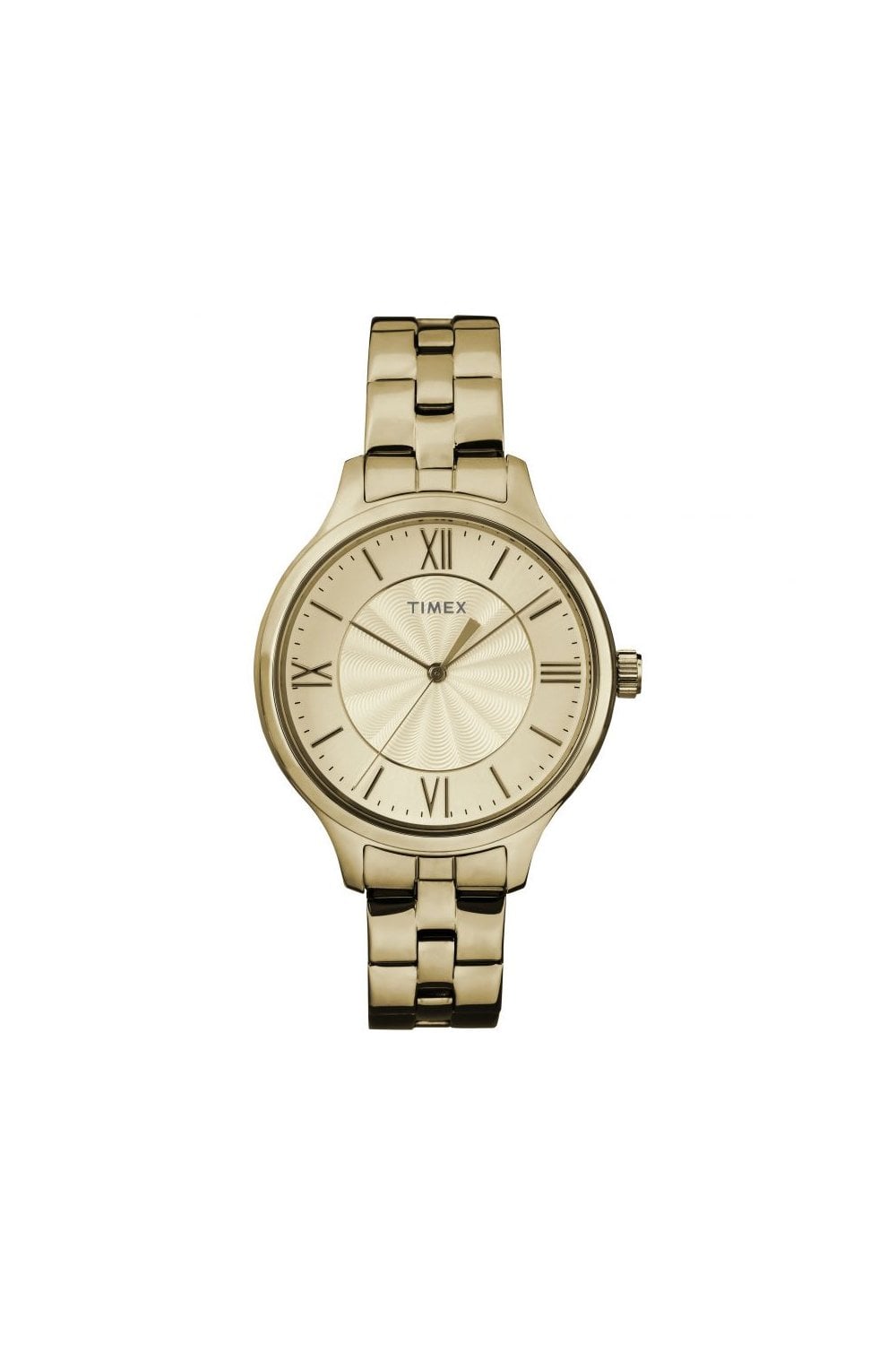 Add a stylish edge to your wrist with this ladies's quartz battery watch from Timex. Featuring an excellent analogue gold face in a 36mm diameter 10mm thick case. Also boasting the well know Timex features, including Mineral Crystal, Push/Pull Crown, and Water-Resistant. With a standard length leather strap. This watch is water resistant up to 50 metres. It also come in it's own Gift Box making it the perfect present.