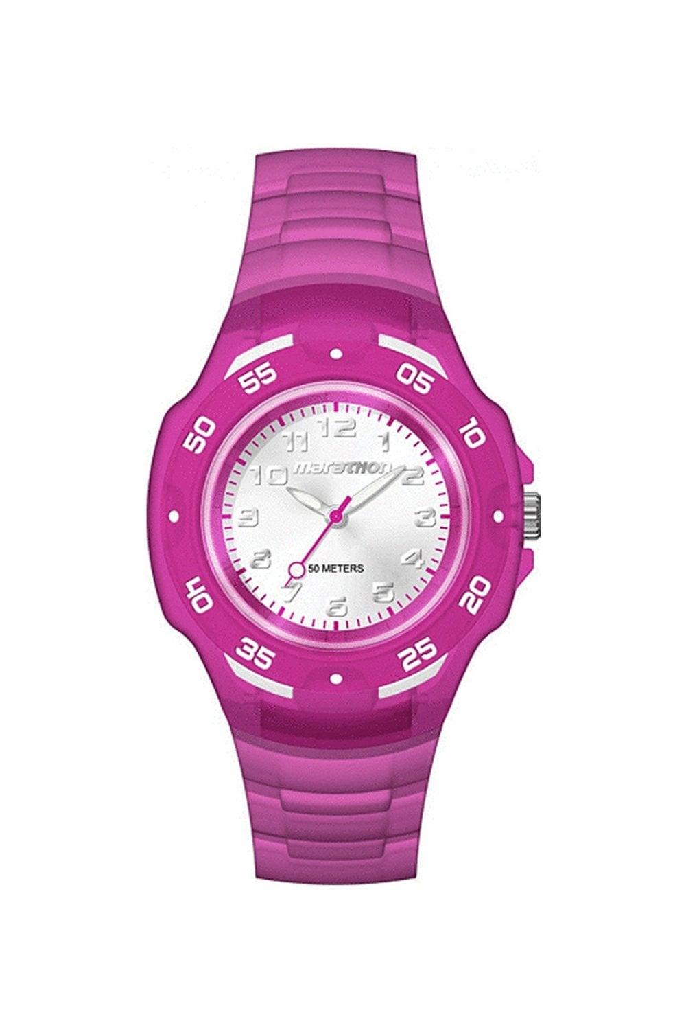 The Timex TW5M06600 is a children's marathon watch with a quartz movement, a silver dial, and a purple resin strap. It's water-resistant up to 50 meters, making it a durable option for everyday wear.